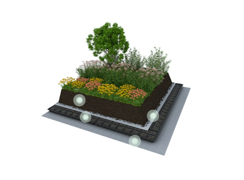 The GARDEN ROOF is a particularly versatile form of intensive green roof. The intensive roof structure can be designed with lawns, shrubs, ponds and in combination with our system accessories, such as planters and edge elements. There is virtually nothing on a roof garden that you can't find in a traditional garden.